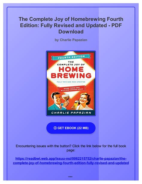 Download Complete Joy Homebrewing Fourth Revised Epub online is a convenient and frugal way to read Complete Joy Homebrewing Fourth Revised you love right from the comfort of your own home. Yes, there sites where you can get Epub "for free" but the ones listed below are clean from viruses and completely legal to use.